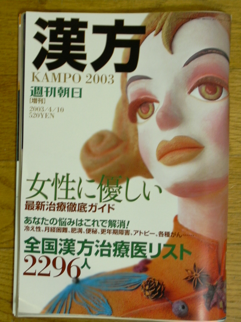 週刊朝日 増刊 「漢方 2003」 P171 2003/4/10号 全国漢方診療医リスト 2296人 |